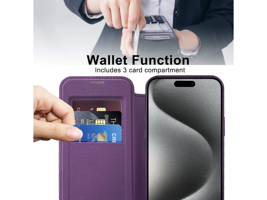 Techsuit - SmartMag Book pouzdro na iPhone 15 Pro - fialové