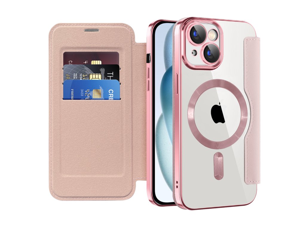 Techsuit - SmartMag Book pouzdro na iPhone 15 - růžové