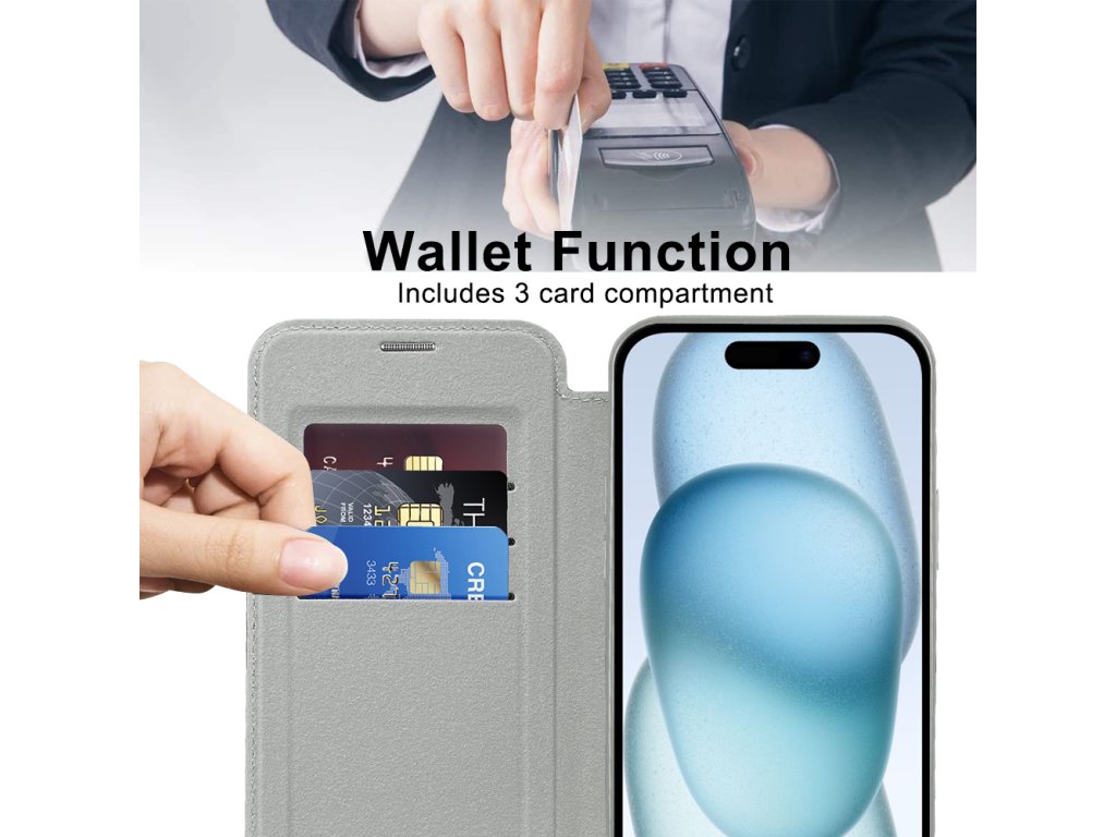 Techsuit - SmartMag Book pouzdro na iPhone 15 - šedé
