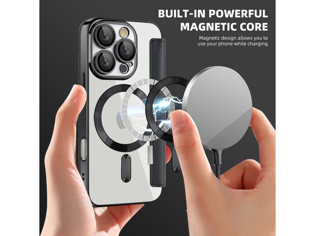 Kryt iPhone 16 Pro peněženka umožňuje okamžité zarovnání s jakýmkoli příslušenstvím MagSafe bez sklouznutí a bez rušení.
