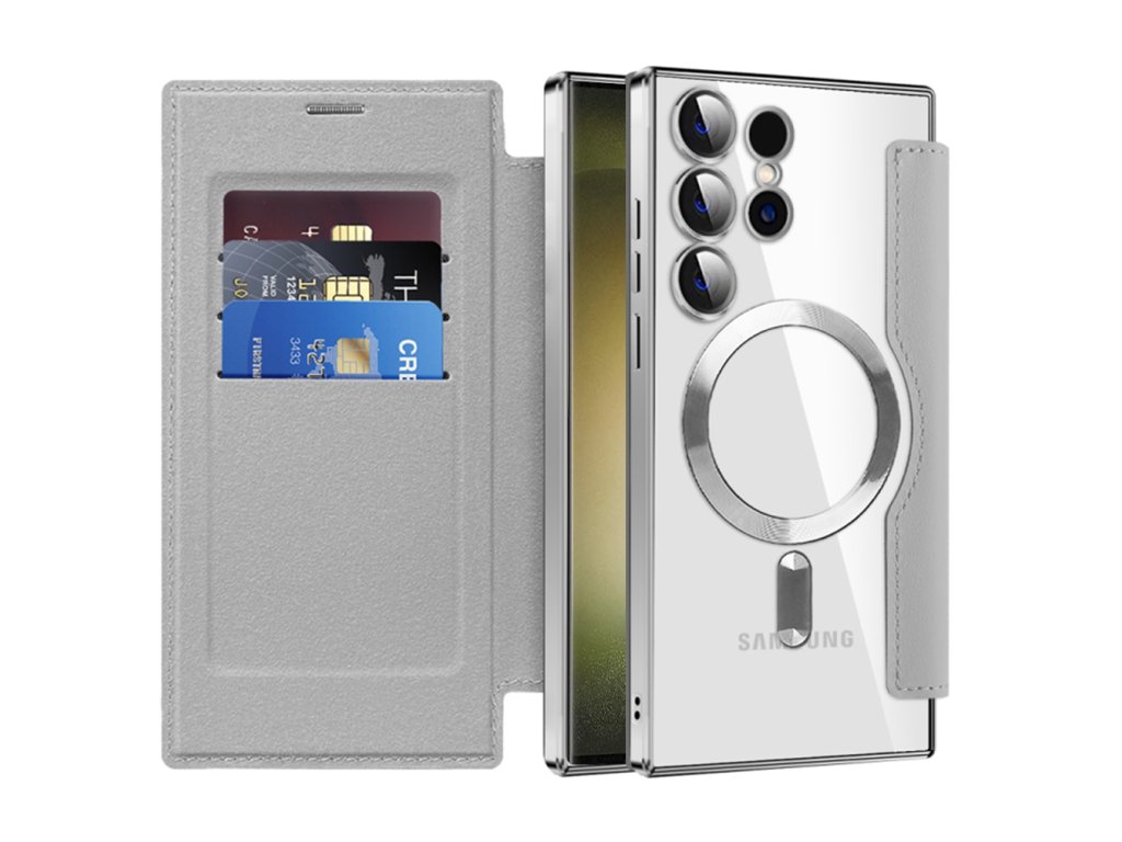 Techsuit - SmartMag Book pouzdro na Samsung Galaxy S23 Ultra - šedé