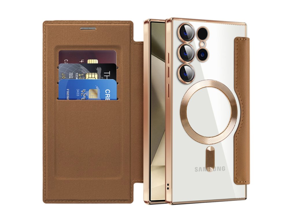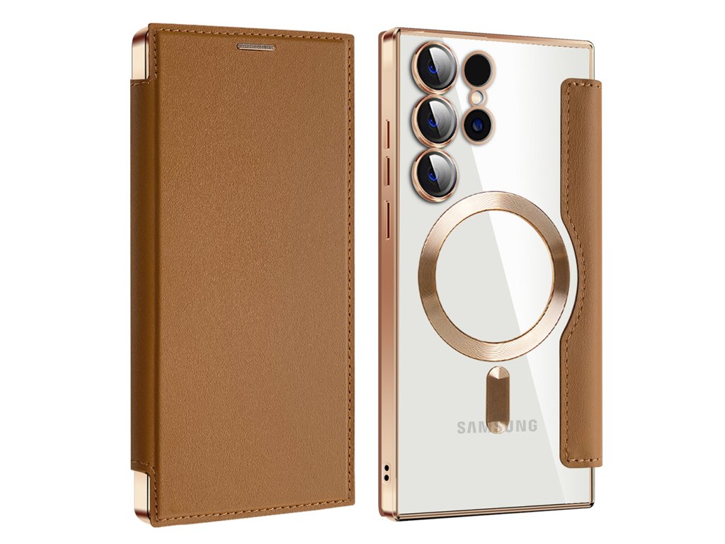 Techsuit - SmartMag Book pouzdro na Samsung Galaxy S24 Ultra - hnědé