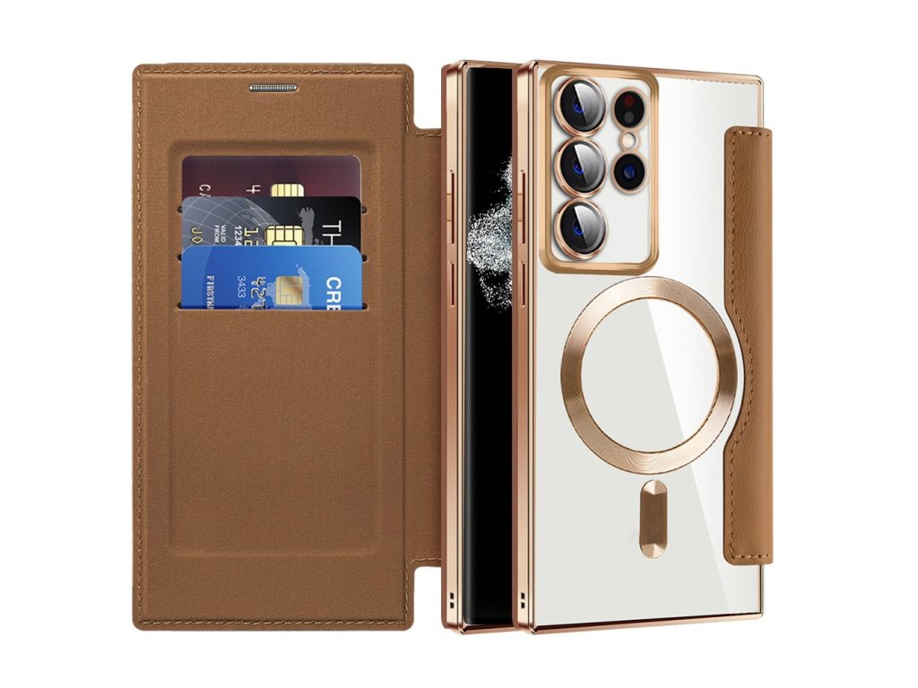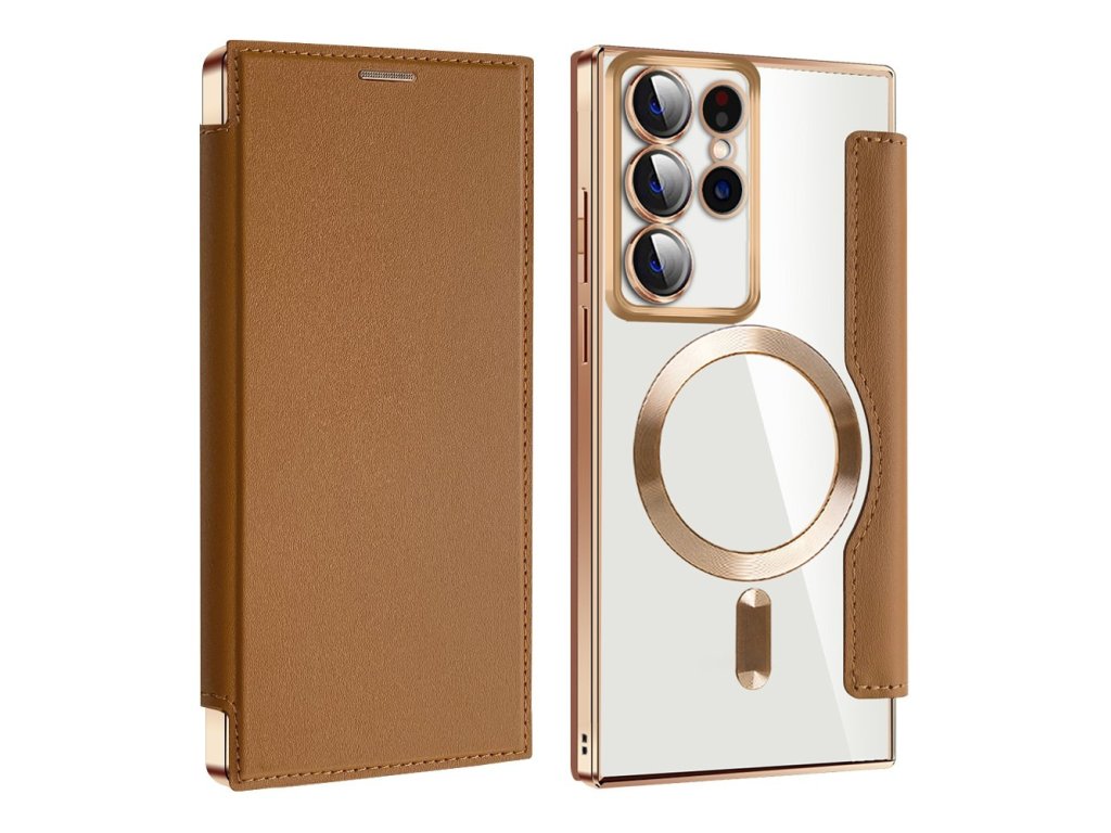 Techsuit - SmartMag Book pouzdro pro Samsung Galaxy S22 Ultra 5G - hnědé