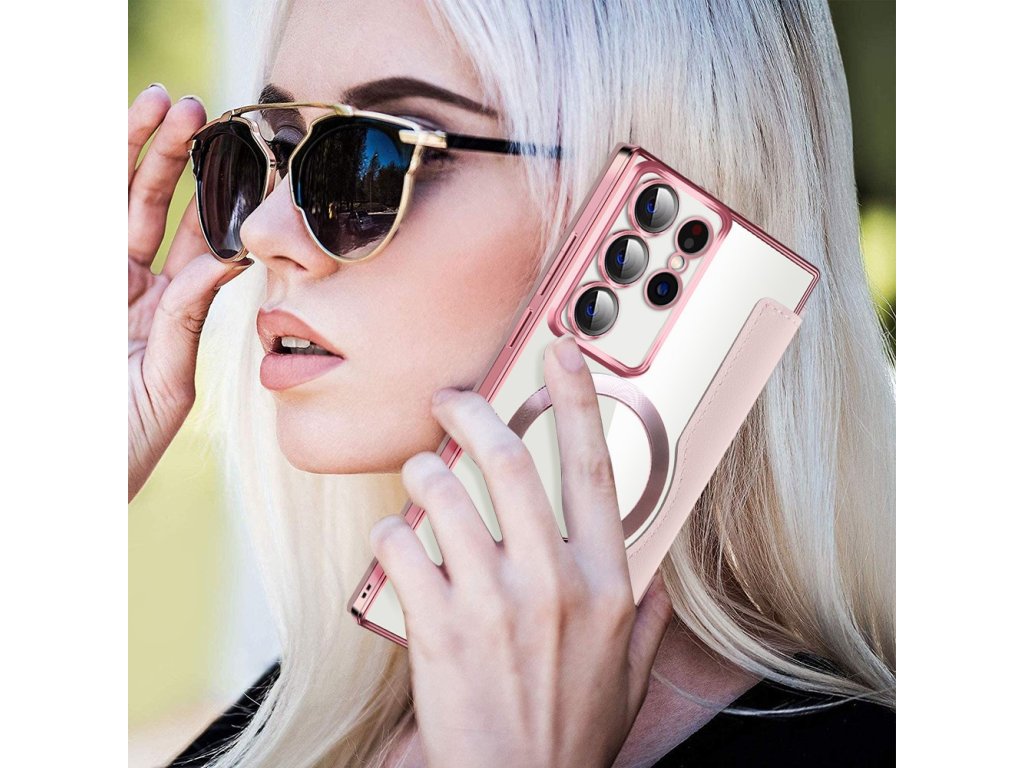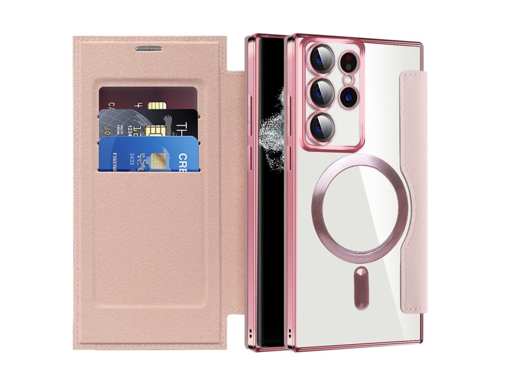 Techsuit - SmartMag Book pouzdro pro Samsung Galaxy S22 Ultra 5G - růžové