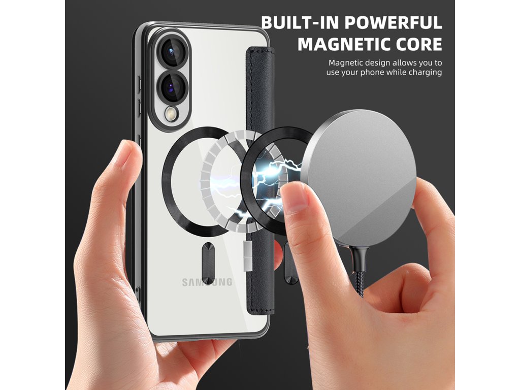 Pouzdro Samsung Galaxy S25 Edge typu peněženka umožňuje okamžité zarovnání s jakýmkoli příslušenstvím MagSafe bez sklouznutí a bez interferencí.