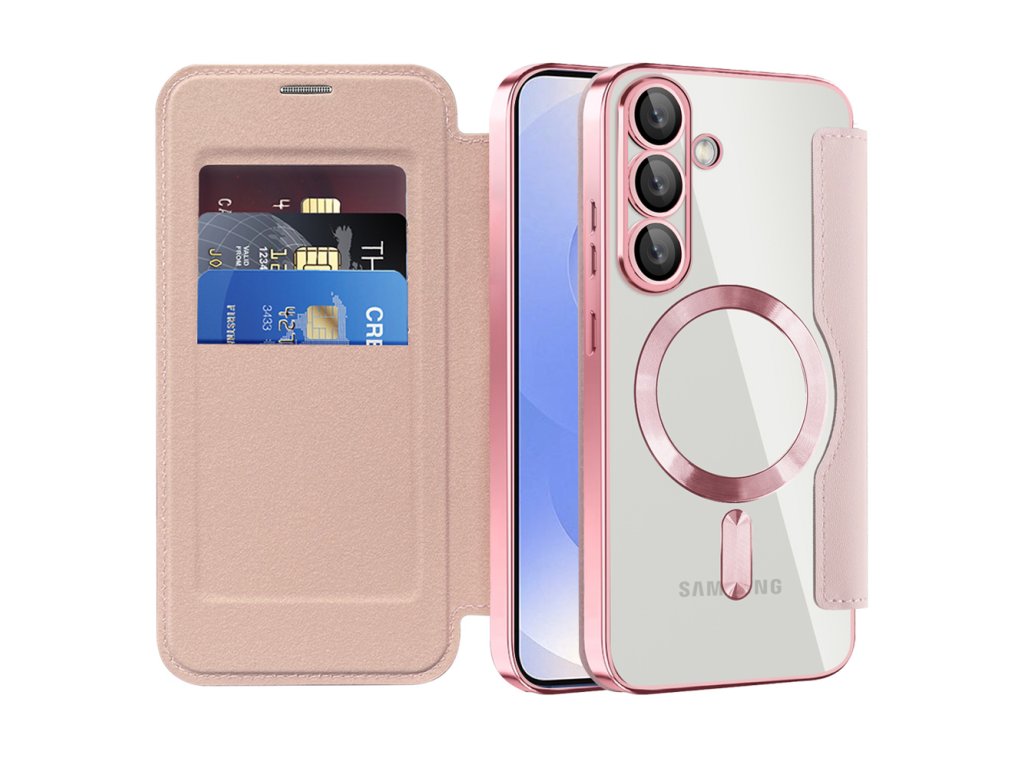 Techsuit - SmartMag Book pouzdro pro Samsung Galaxy S25 Plus - růžové