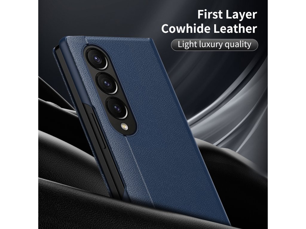 Kryt Samsung Galaxy Z Fold3 5G, vyrobený z ekologické kůže, obaluje telefon do jemné struktury, která nejenže vypadá, ale i působí prémiově.