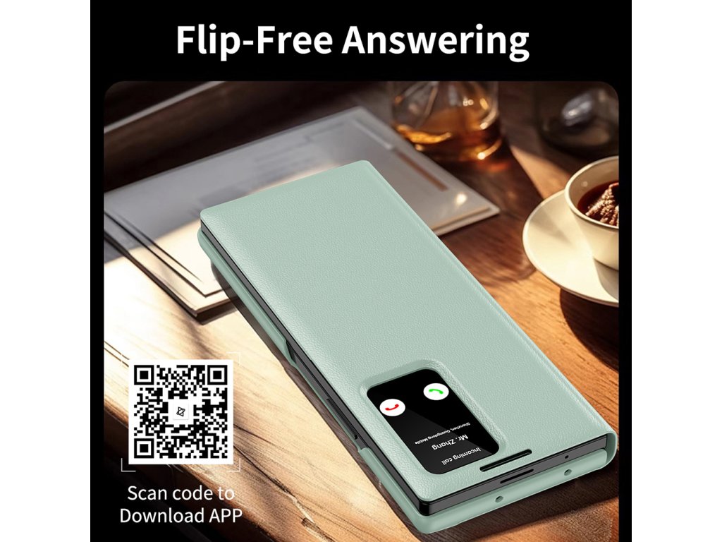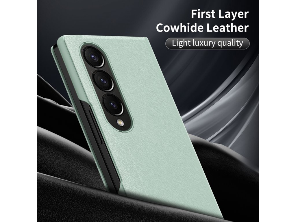 Kryt Samsung Galaxy Z Fold4, vyrobený z ekologické kůže, obaluje telefon jemnou texturou, která nejen vypadá, ale také se cítí prémiově.