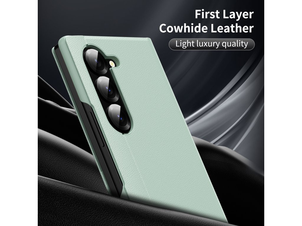 Kryt Samsung Galaxy Z Fold6, vyrobený z ekologické kůže, pokrývá telefon jemnou texturou, která nejen vypadá, ale i působí prémiově.