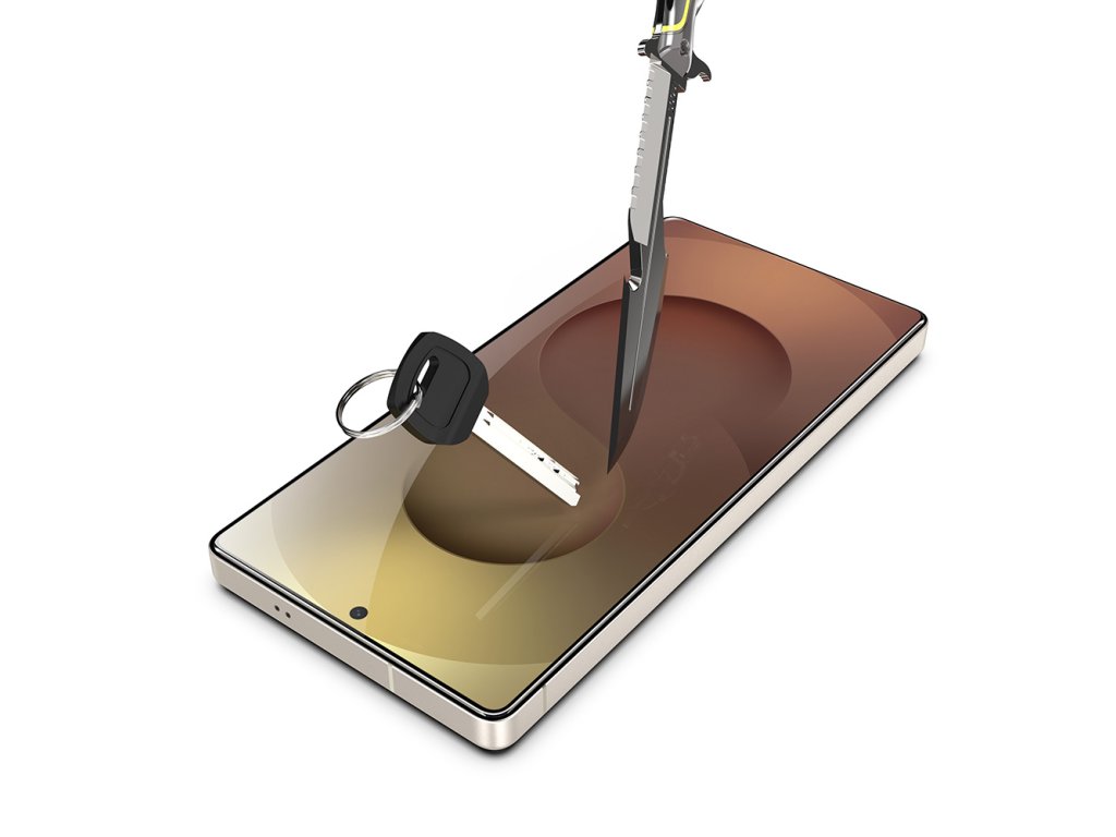 Ačkoliv tenká a nenápadná, fólie Samsung Galaxy S25 byla testována v reálných podmínkách a odolá středně těžkým nárazům.