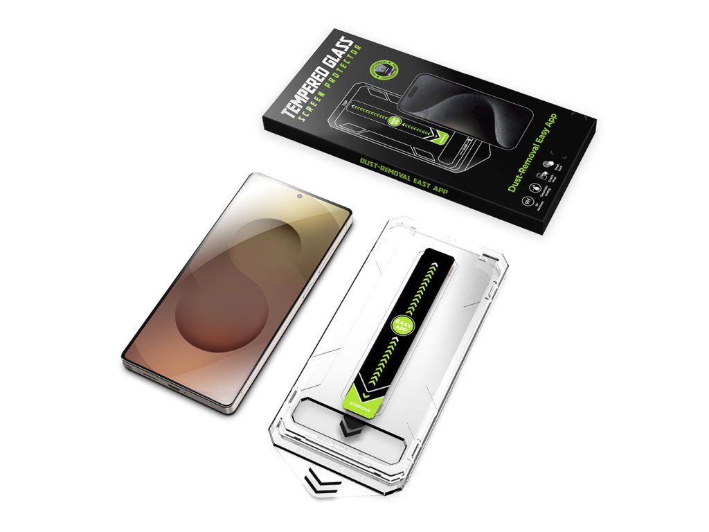 Fólie pro Samsung Galaxy S25 přichází s inteligentním systémem instalace – vodicí rám, který dokonale zarovná ochranu s displejem.