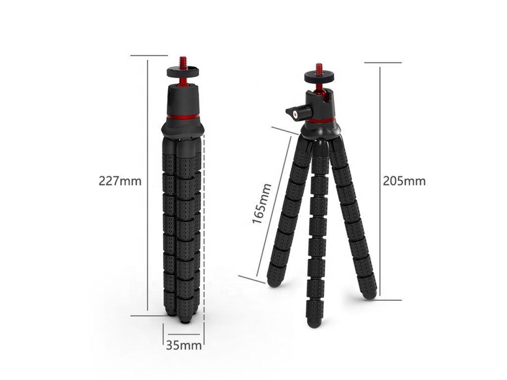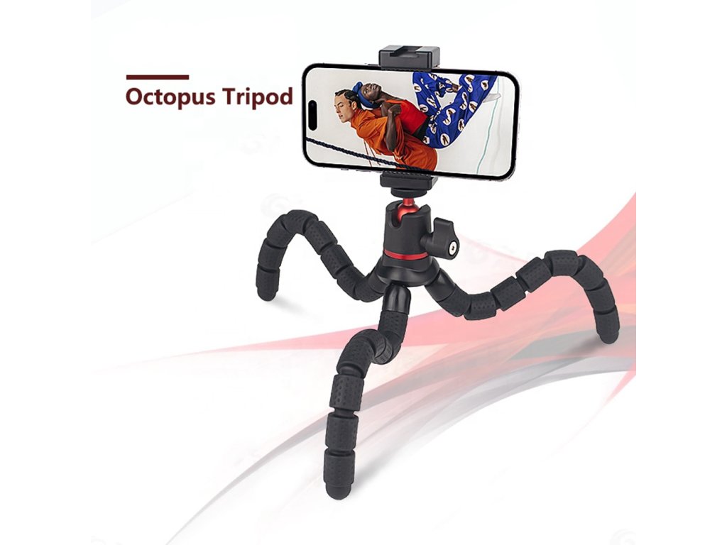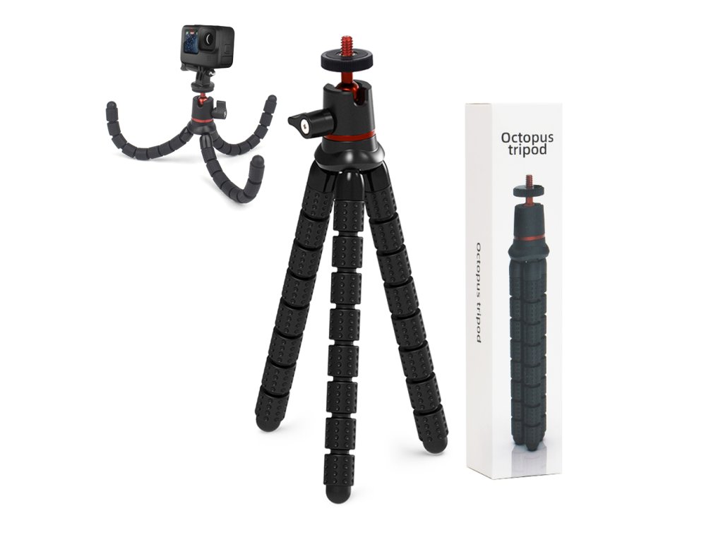 Techsuit Tripod Octopus JX-004 pro telefony a GoPro, přenosný a flexibilní – černý