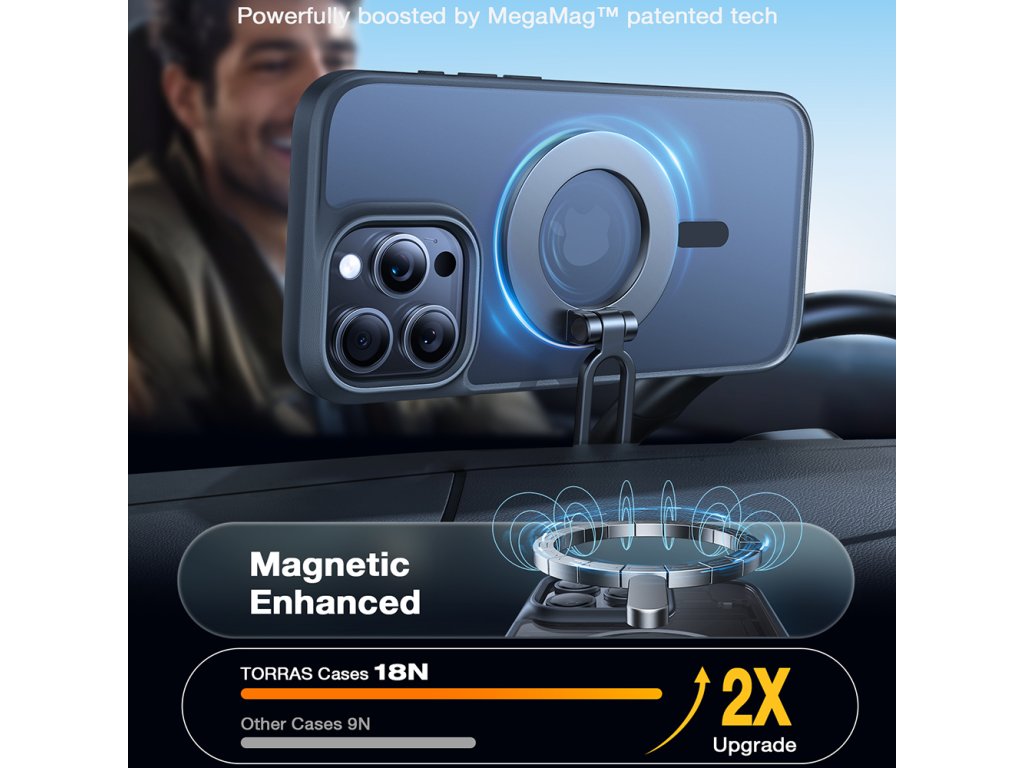 Jasně, že Torras vybavil toto protismykové pouzdro viditelným a optimalizovaným MagSafe kroužkem pro snadné připojení k libovolnému magnetickému příslušenství.