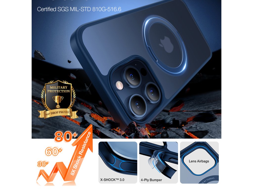 Torras – Ostand Pro Series – kryt se stojanem pro iPhone 15 Pro – tmavě modrý