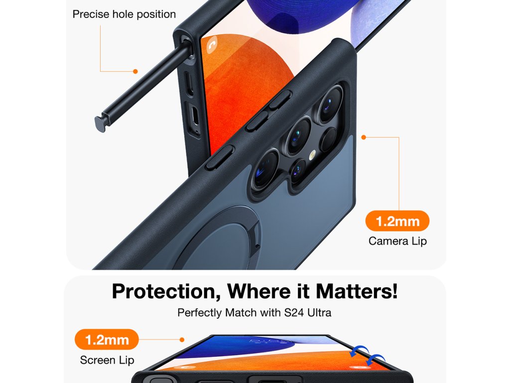 Nové originální pouzdro Samsung Galaxy S24 Ultra od Torras, jiná vize.⭐Představujeme vám kryt s interaktivním kroužkem MagSafe. Zaručená ochrana zad a podpora.