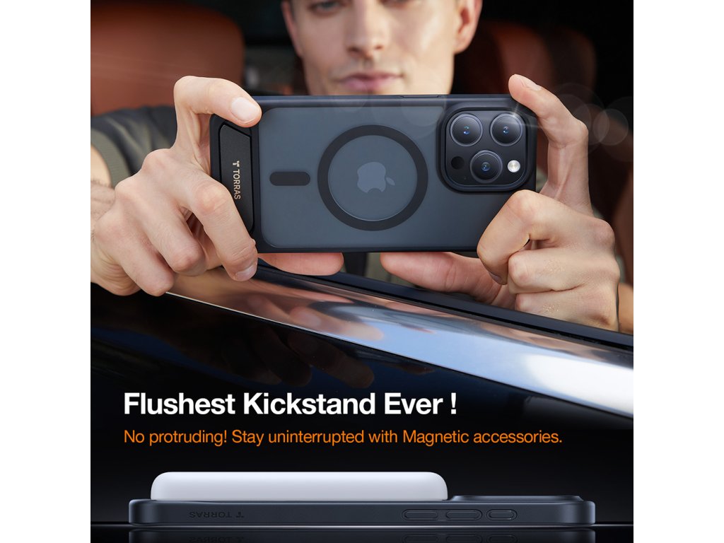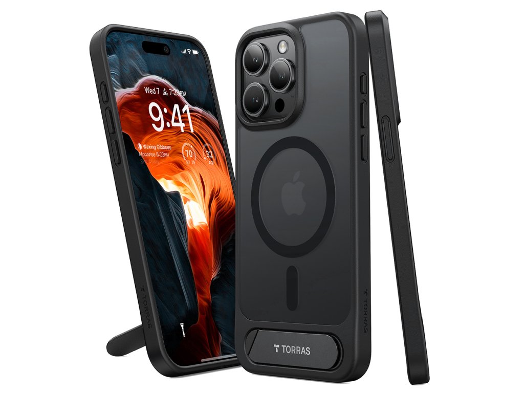 Torras – Pstand kryt se stojanem pro iPhone 15 Pro – černý