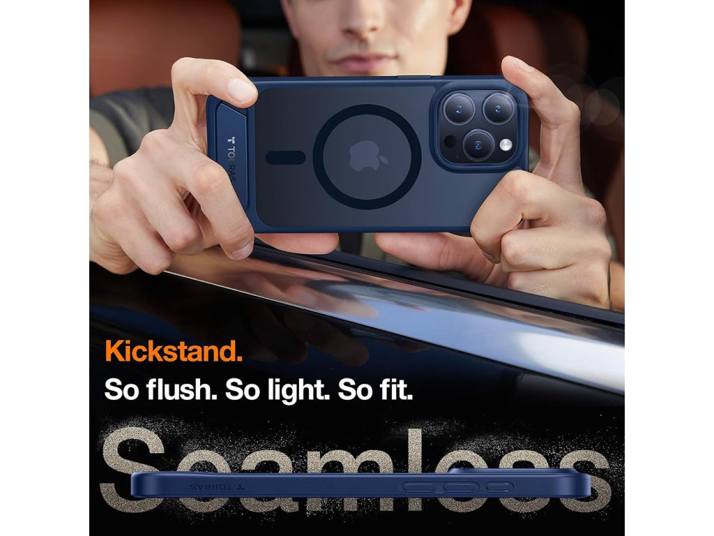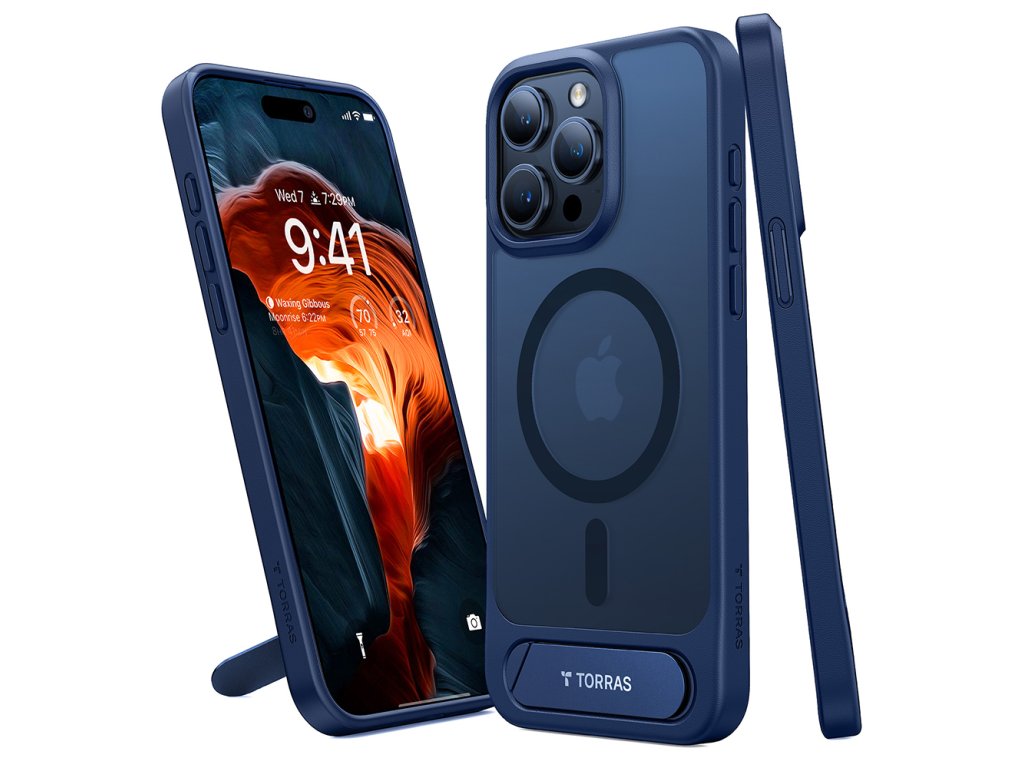 Torras – Pstand kryt se stojanem pro iPhone 15 Pro Max – tmavě modrý