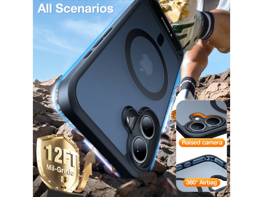 Pouzdro iPhone 16 od Torras má zvláštní strukturu. Vojenský stupeň ochrany a technologie Air Cushion jsou jen některé z výhod.